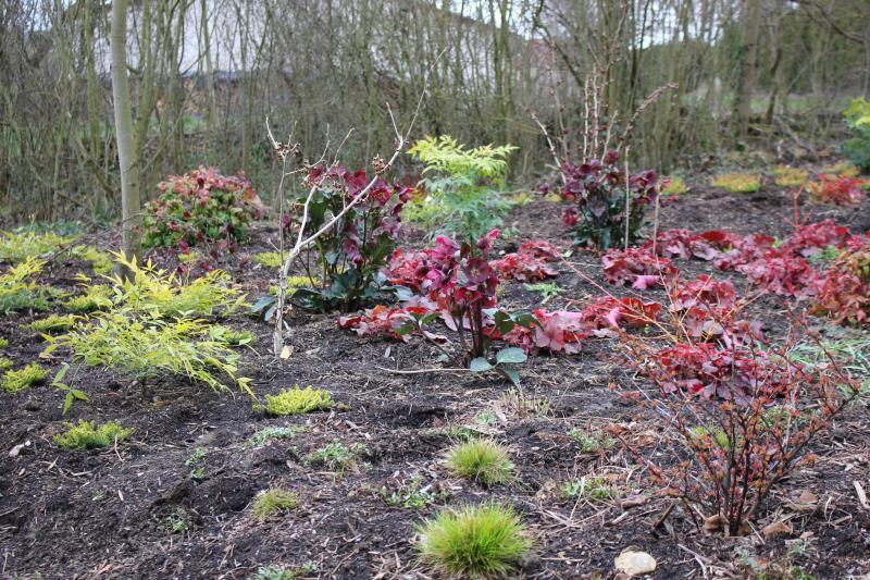 Das leuchtende Rot der Hellis ist hier bestechend schön zu den Heuchera (wenn das denn welche sind, erkenne ich auf Handybild nicht genau) :D