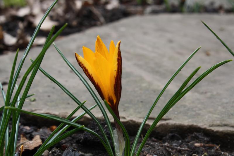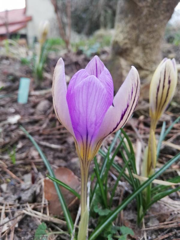 Heute ging endlich ein erster Crocus auf - allerdings an einer Stelle in der Wiese, wo ich wissentlich keine gesteckt habe...