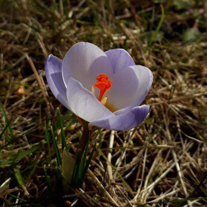 Heute ging endlich ein erster Crocus auf - allerdings an einer Stelle in der Wiese, wo ich wissentlich keine gesteckt habe...
