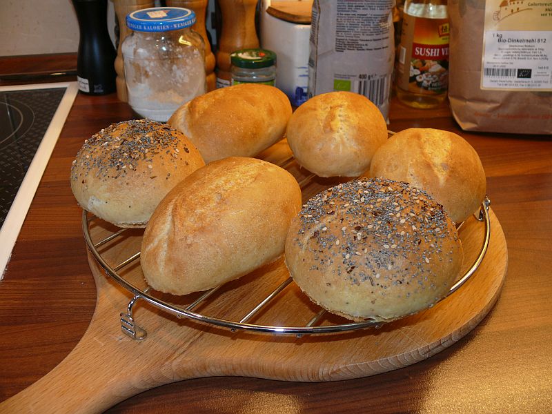 Dinkelbrötchen mit und ohne Körnermischung gab es zum Frühstück.