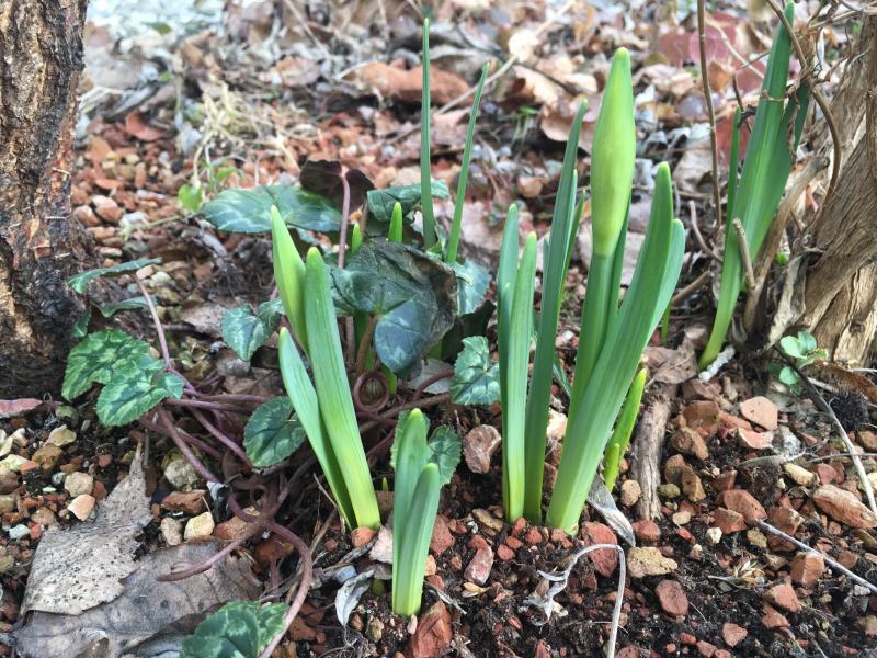 So schlecht ist die Kombination mit Narzissen doch nicht, Cyclamen hederifolium stört es vermutlich nicht. 😉