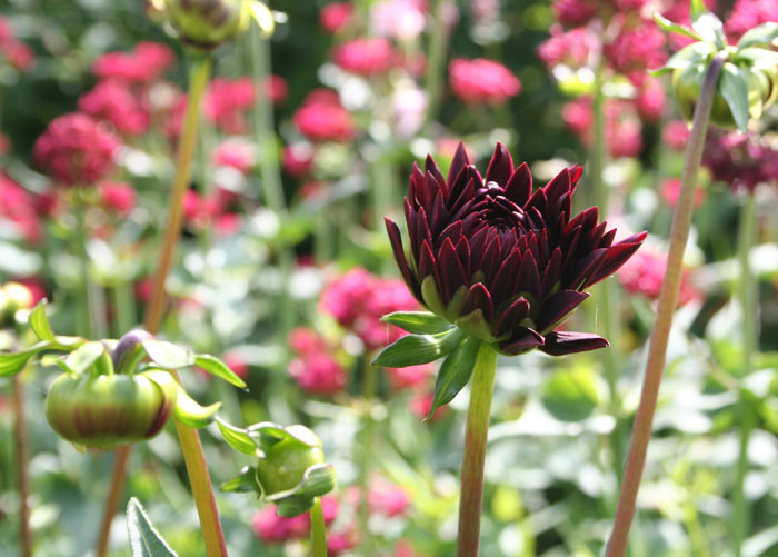 Die dunkelrote Rabatte hatte ich schon von früher und zu einem späteren Termin im Jahr bewundert - das Potential erkannten wir aber schon Anfang Juni. Leider macht das Bild dazu nicht viel her ...