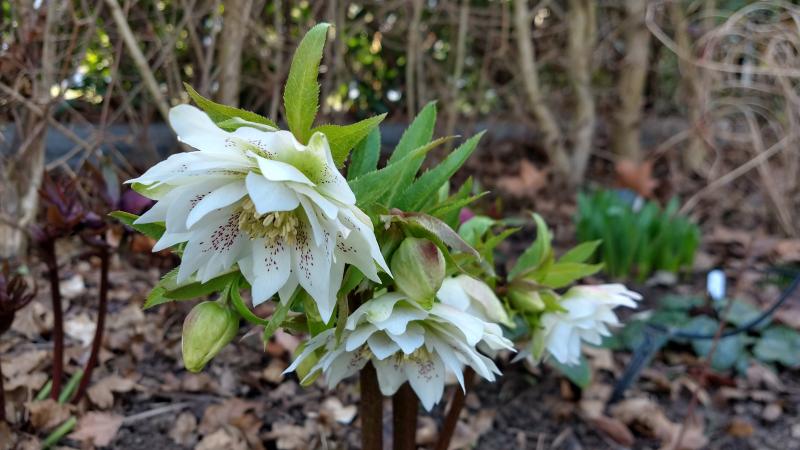 Helleborus x nigercors). Absolut makellos und ohne jegliche Abdeckung hat er den ersten Winter hier überstanden und blüht bereits seit einigen Wochen. Kein einziges Fleckchen haben die cremegelben, porzelanartigen Blüten. Auch das (alte) Laub ist noch kerngesund.