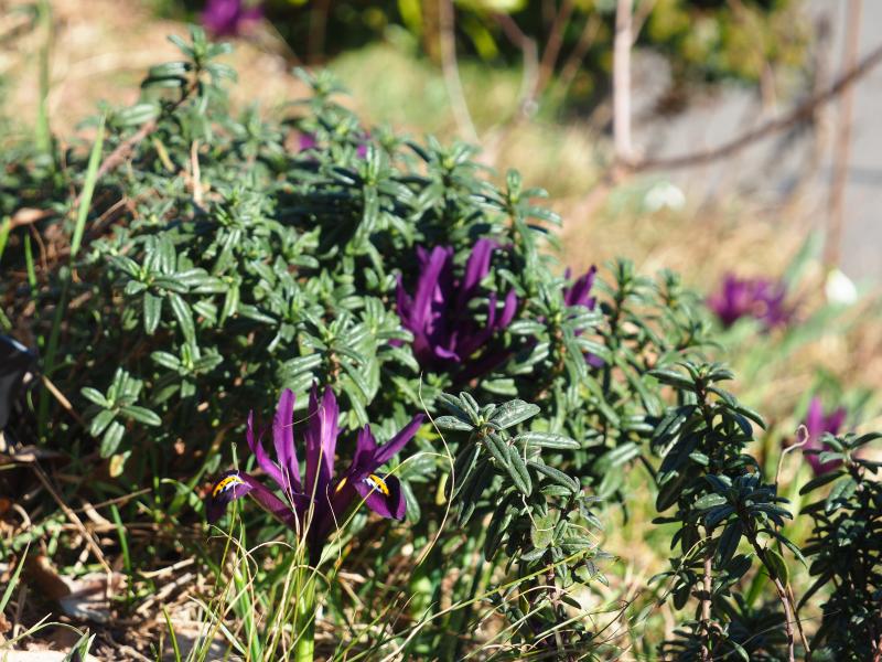 2017 gesteckt, jetzt im 2. Jahr. Knochentrocken und sonnenexponiert am Hang. Iris reticulata 'J.S.Dijt'.