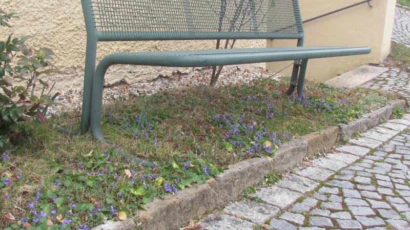 Momentan zeigen die Duftveilchen die wärmsten Stellen an, das hier ist nicht bei mir, aber "einmal ums Eck", dort scheint die Sonne praktisch ganztägig hin. Wo es schattiger ist, sind die Veilchen auch weiter zurück. Im Hausarten gibts auch welche, auf denen bin ich in letzter Zeit aber zu oft rumgetrampelt.