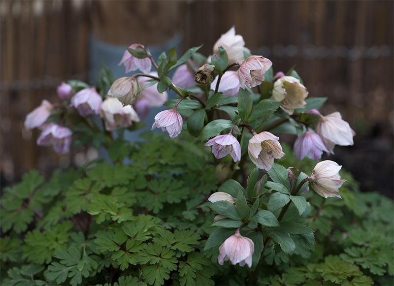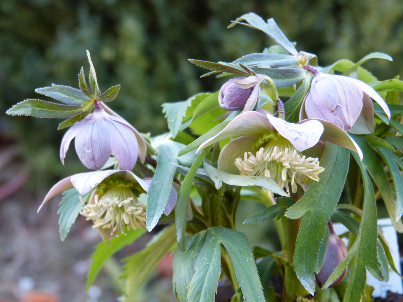 Helleborus thibetanus, schon wieder am verblühen. Die ersten Kospen kamen diesmal schon sehr früh im Januar.
