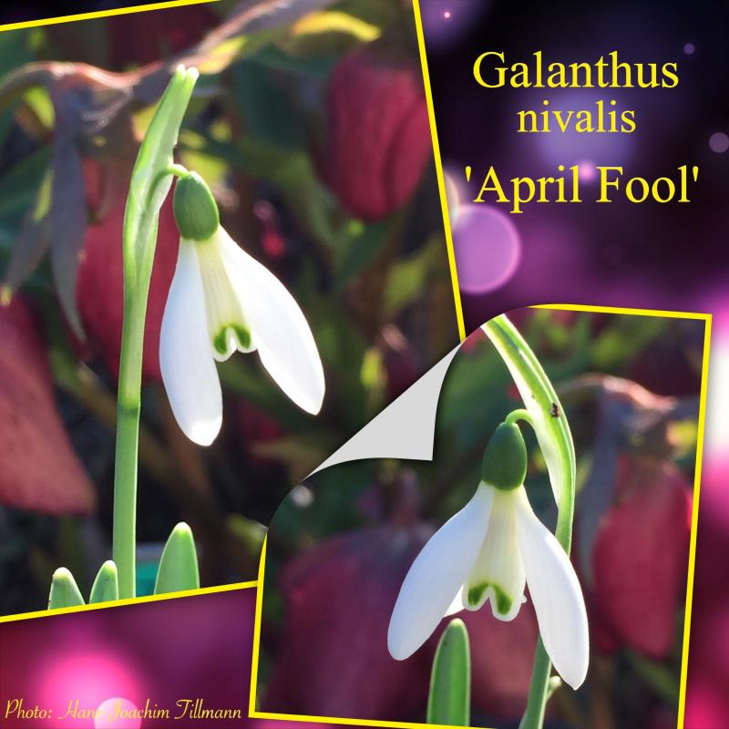 Dieses Glöckchen wurde vor einigen Jahren aus den Zwiebeln einer G. nivalis-Packung ausgelesen. Die Blüten sind deutlich größer als die meiner Nivalis. Auch die Blätter sind etwas breiter und rein grün. Die Bilder wurden vor zwei Tagen aufgenommen.