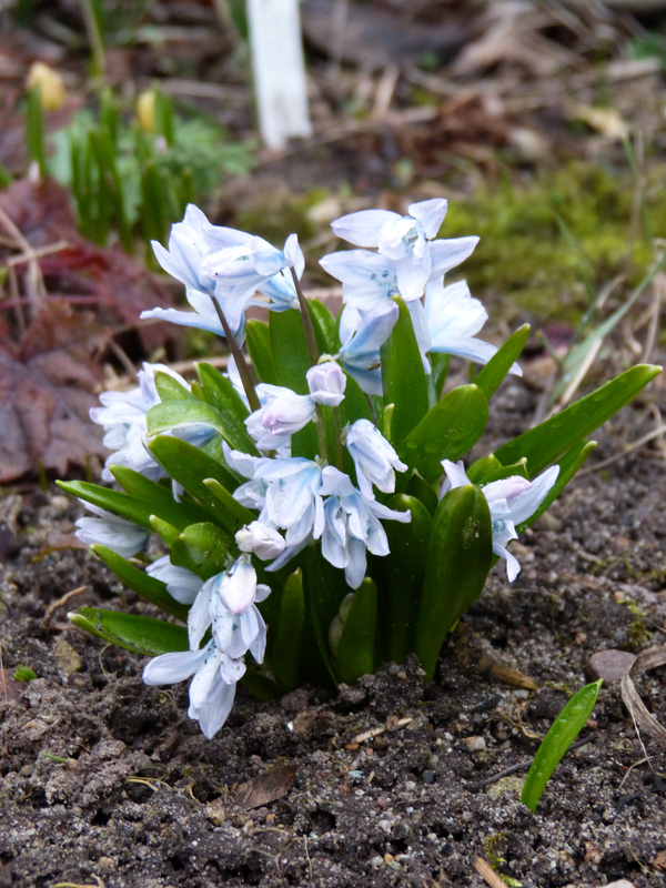 Scilla miczenkoana blüht ebenfalls. S. siberica ist bereits knospig.