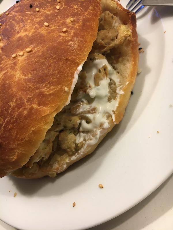 Fladenbrot mit Hähnchengyros und Tzatziki gefüllt