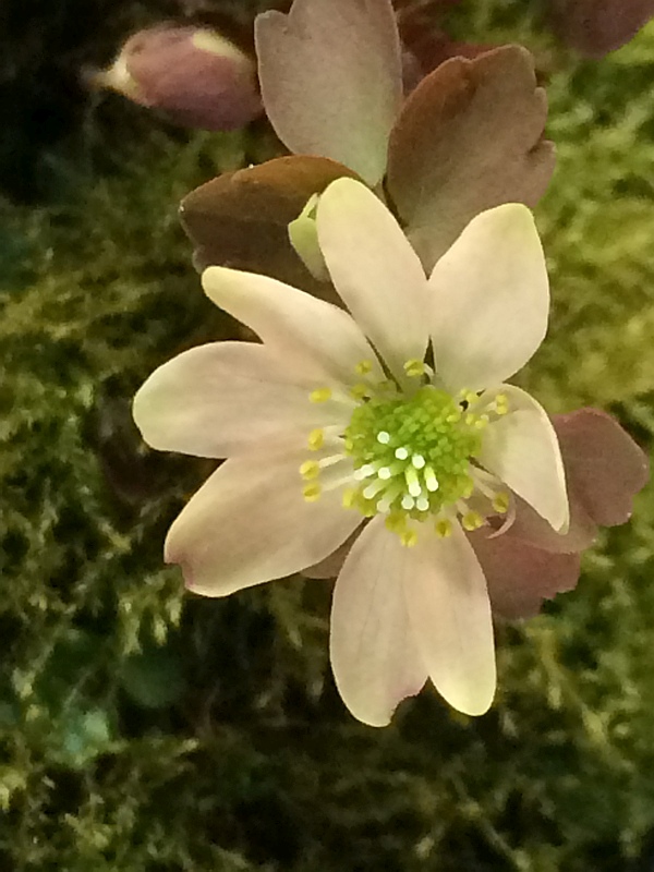 Jahrelang habe ich versucht, Shortia zum blühen zu bringen. Erfolglos. Letztes Jahr habe ich sie mitten im heißen Sommer umgepflanzt, und jetzt blühen zwei davon. Ich bin mir aber wegen der Art nicht unbedingt sicher. Vermutlich Shortia uniflora