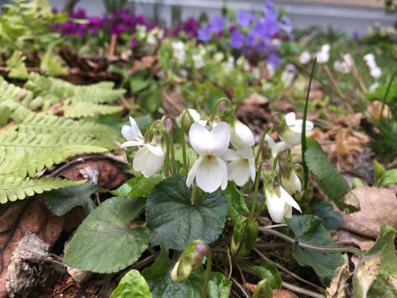 Jeden Tag blühen hier jetzt mehr Veilchen. Ganz viele Sämlinge gibt's mittlerweile von 'Königin Charlotte'