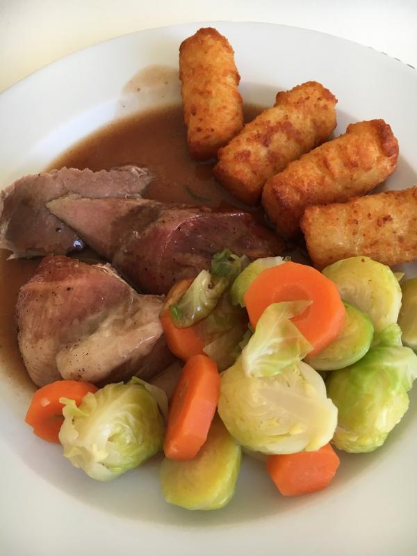 gestern Putenkeule mit Kroketten und Wegmussgemüse
