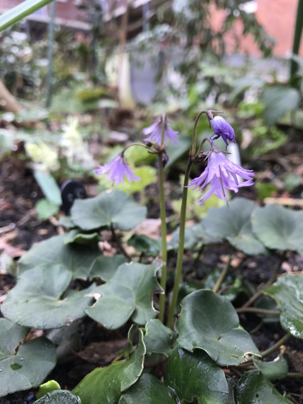 Jahrelang habe ich versucht, Shortia zum blühen zu bringen. Erfolglos. Letztes Jahr habe ich sie mitten im heißen Sommer umgepflanzt, und jetzt blühen zwei davon. Ich bin mir aber wegen der Art nicht unbedingt sicher. Vermutlich Shortia uniflora