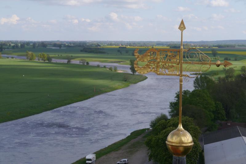 aber letztes Jahr Ende April nach unserer Elberadweg-Tour waren wir auch in Torgau - Oiles Wetterfahnen Bild vom Turm habe ich fast gleich, nur mit frischgrünen Bäumen.