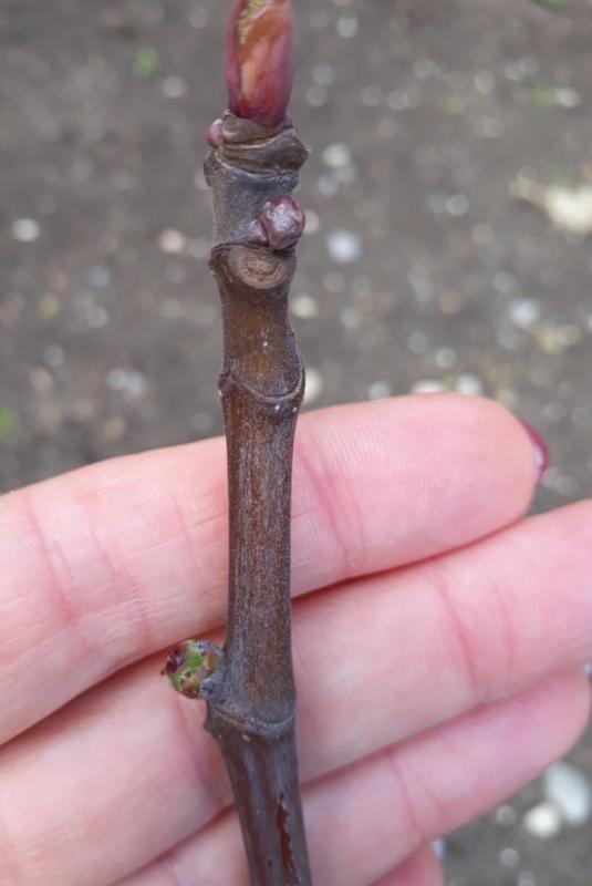 Unsere gerade mal 2-jährige RdB hat zu meiner Freude auch Brebas. Letztes Jahr hatte sie schon mehrere Herbsfeigen, und das im 1-jährigen Alter! Diesmal habe ich mehrere Brebas entdeckt. Hier das Foto von einem Ast, es sind aber viel mehr Brebas an mehreren Ästen.