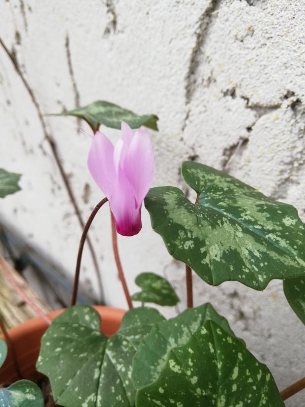 Cyclamen rhodium ssp peloponnesiacum ist seit einigen Tagen auch aufgeblüht, allerdings hat es dieses Jahr nur zu einer Blüte gereicht.