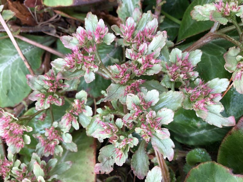 Und die 2. 'Blüte' von Chrysosplenium macrophyllum: Verblühtes färbt sich rosa und sieht fast noch schöner aus als die richtige Blüte