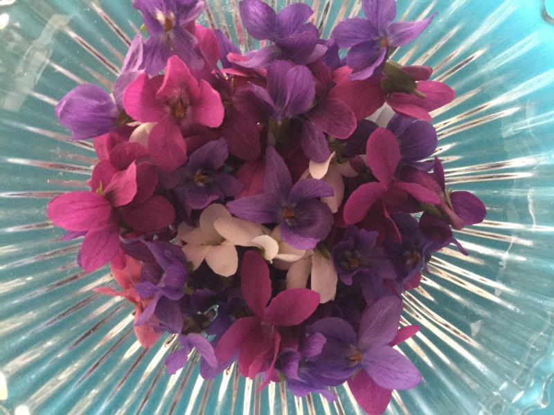 Ich habe doch noch mal Veilchen kandiert. Und vorher meine Nase in der Schüssel versenkt. Der beste Geruch, den es gibt. Übertroffen nur von Parmaveilchen, aber die blühen noch nicht.