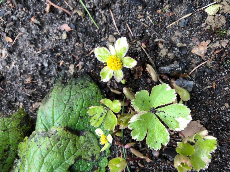 Und die 2. 'Blüte' von Chrysosplenium macrophyllum: Verblühtes färbt sich rosa und sieht fast noch schöner aus als die richtige Blüte