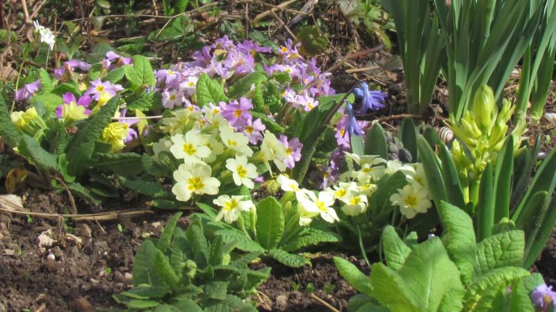 Davon kann man nie genug haben! Ob jetzt "reine" Arten oder nicht - hier sind vulgaris und elatior im Garten und scheinen sich nicht zu mischen - sind entweder hoch oder niedrig und bilden einen schönen Frühlingsaspekt mit dunklen Helleboren und blauen Hepatica und anderen..