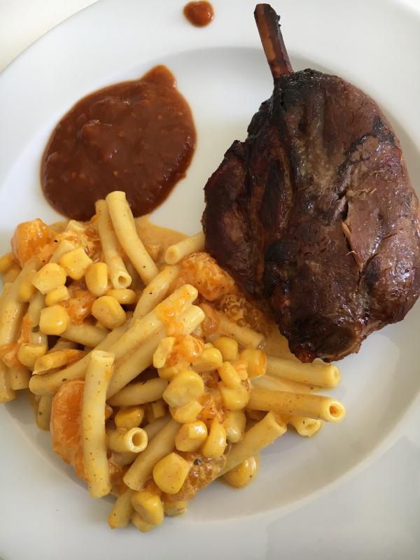 Minihaxen mit Currynudelsalat und Tomatenchutney
