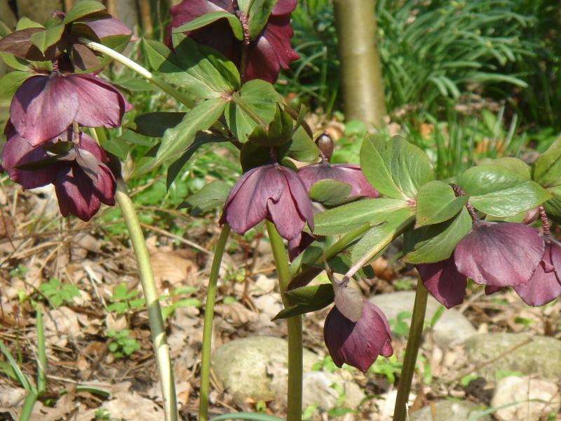 Durchgehend sonniger Tag in Bremen heute, die Wildtulpen , hier t. turkestanica , haben die Gelegenheit ( zum Blühen ) gleich wahrgenommen, dahinter Helleborus x orientalis ( Annas Red)