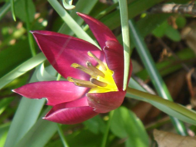 ..noch einen Wildtulpe ( t. wochenmarktii ), auf der Tüte vom Wochenmarkt stand " Wildtulpenmischung", diese hier leuchtet durch den ganzen Garten.