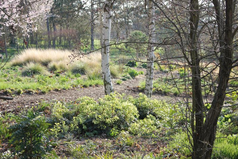 Die Berberitze ist gleich rechts. Mittlerweile treibt sie sehr leuchtend rot aus. Das Ganze hat sich schon wieder sehr verändert.