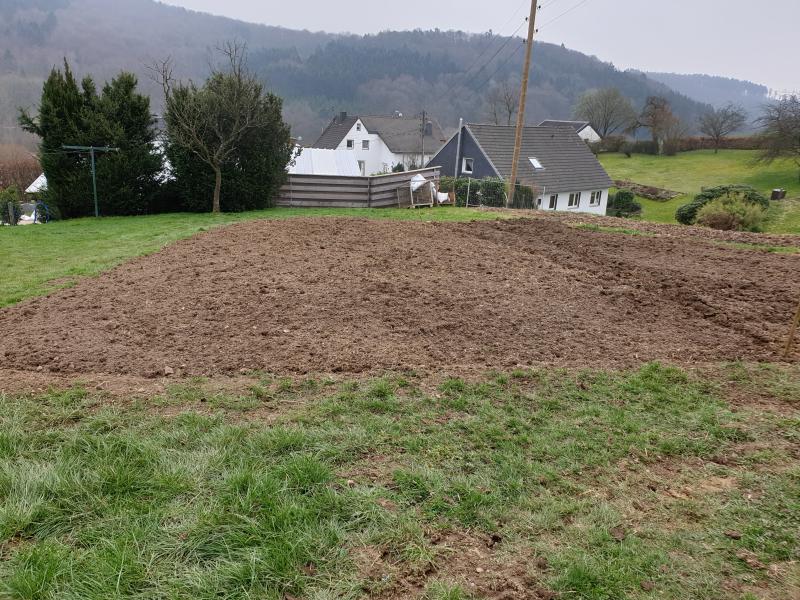 Auf der linken Seite ist ein kleiner Teil von dem gefrästen einer Nachbarin, sie möchte da etwas Gemüse anbauen. Da wo ich zum knipsen stand soll eine kleine Bank für uns hin, zum quatschen, Kaffee trinken und Natur genießen. Das wird toll.