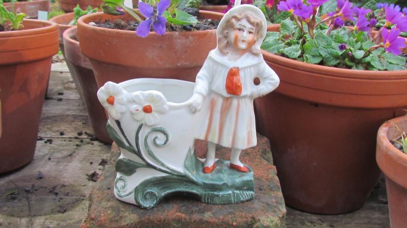 Im Schrank schlummert eine kleine Vase, in welcher wohl früher Veilchensträußchen standen. 50er-Keramik, nat. ohne Stempel, aber das junge Mädchen das sie damals zur Konfirmation bekam, wird sich riesig gefreut haben.
