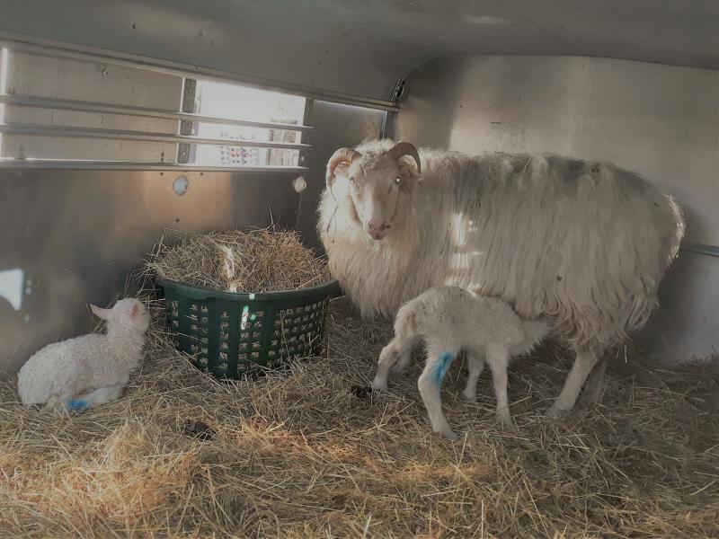 Man weiß immer nicht wofür es gut ist. Neuerdings kommt Heidi bereitwillig ran und ihre Lämmer auch. Die haben wir sonst die Jahre ja nur von hinten gesehen. Hanna braucht keine Zusatzkost mehr, da Heidi mittlerweile genug Milch hat und das Lamm bestens wächst und gedeiht.