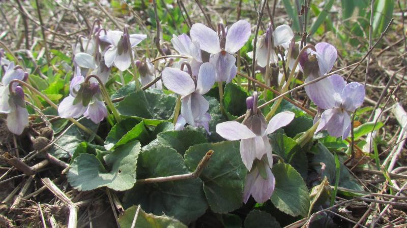 Schon gestern, aus dem Augenwinkel neben dem Straßenrand was gesehen und "Weiße Veilchen!" gedacht. Heute dann angehalten, sie sind komplett weiß, ohne Sporn. Eines durfte dann mit, dort wird irgendwann eh gebaut. Sieht jetzt halt etwas schlaff aus. Mal für mich "Marianne" genannt, nach einer alten Frau, die schon lange verstorben ist und daneben vor Jahren ein kleines Gärtle hatte.