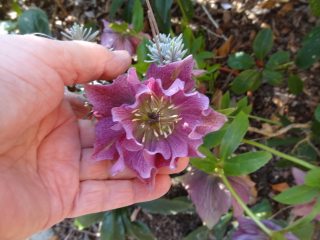 Derzeit sind alle Helleboren beliebte Ziele für die Bienen. Ich trau mich kaum, die Blüten anzulupfen, weil es ständig darunter summt.