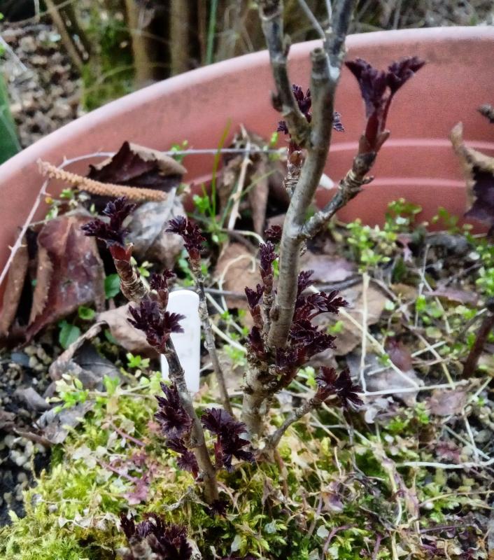 Hier eine Kleinere Pflanze, die ich mal Rot5 benenne. Mir gefällt die schöne dunkle Färbung des ein-jährigen Holzes.