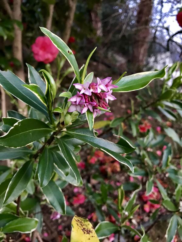 Hier im Zweitgarten blüht der vor zwei Jahren gepflanzte Daphne odora 'Aureomaculata'... ich liebe diesen Duft nach Penatencreme und Orangenblüten...😍😋