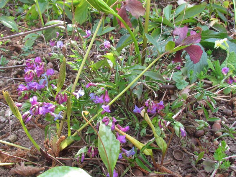 Hier blüht auch Lathyrus vernus, diese Pflanze oder ihre Mutter kam mal von einer Wanderung zur Teck mit hierher, das ist aber schon lange her.
