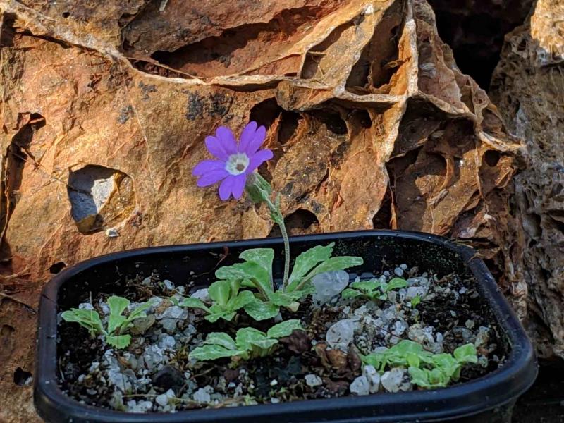 Noch schnell eine etwas weniger spektakuläre Alpine. Primula kialensis (Sichuan, 2300 m, ausgesät 2017) nur 3 cm hoch.