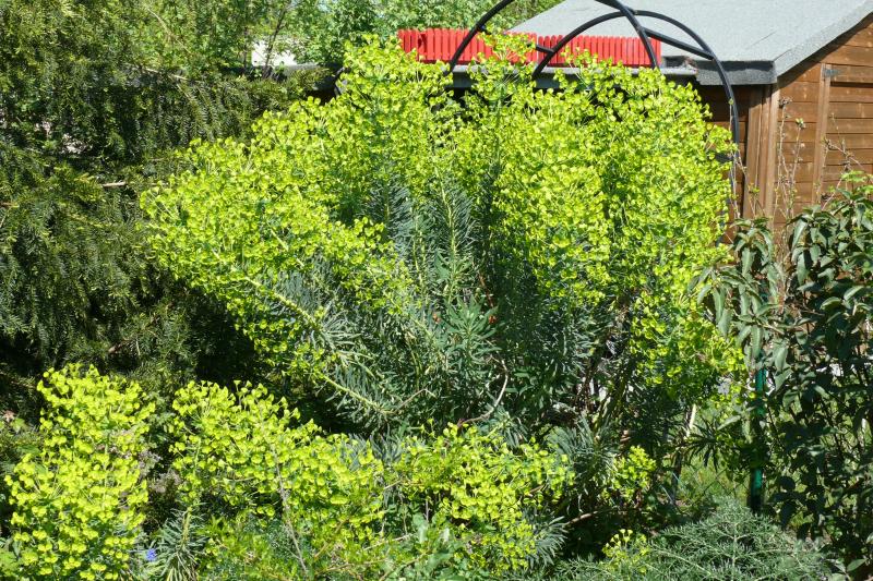 Hier war diese schöne üppige blühende E. amygdaloides 'Purpurea' voriges Jahr plötzlich völlig verschwunden. Gestern habe ich zu meiner Freude wieder einen Austrieb entdeckt und auch einen ca. 1 Meter entfernten Sämling. Hoffentlich kann ich sie wieder hochpäppeln.