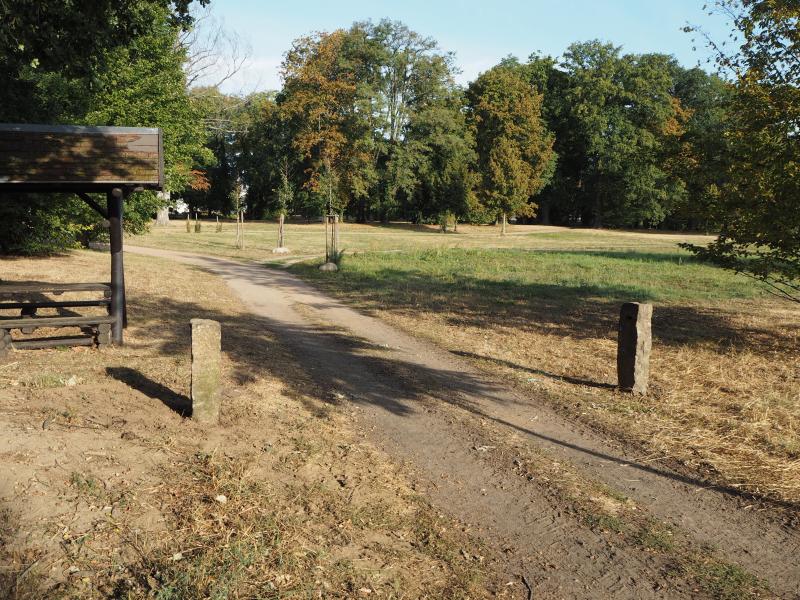 Ich würde rechts und links eine alte, unschicke Granit- oder Sandsteinsäule eingraben und dazwischen eine Eisenkette spannen.