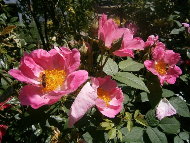 Eine Strauchrose ist sehr beliebt bei Bienen, Hummeln und co, wenn die Blüten nicht gefüllt sind. Kolkwitzie ist bei Blüte auch umschwärmt.