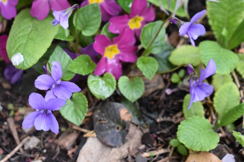 Duftveilchen sind hier am Verblühen, die Pfingstveilchen erst am Farbe zeigen, überbrückt wird durch Hainveilchen (glaub ich), die haben sich an einer Stelle im Niemandsland vor dem Gartenzaun recht schön angesiedelt.