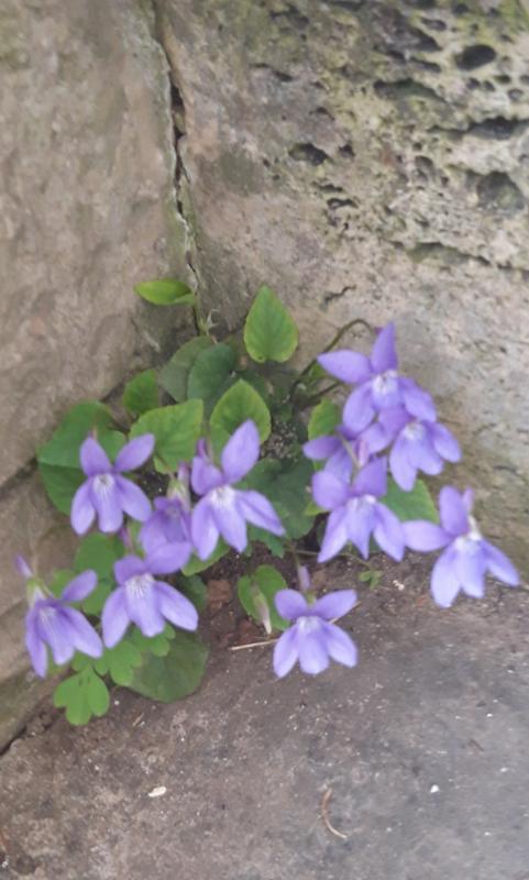 Heute entdeckt. Das Veilchen wächst aus einer kleinen Ritze der Steintreppe.