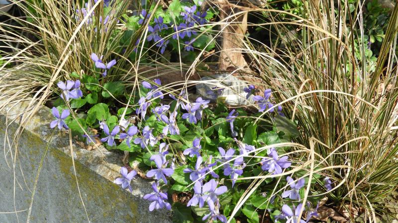 Duftveilchen sind hier am Verblühen, die Pfingstveilchen erst am Farbe zeigen, überbrückt wird durch Hainveilchen (glaub ich), die haben sich an einer Stelle im Niemandsland vor dem Gartenzaun recht schön angesiedelt.