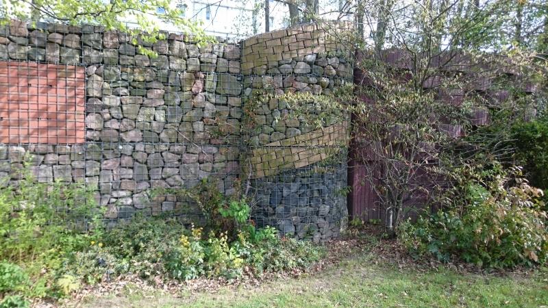 Wobei ich eine Gabionenwand sah, die konnte man akzeptieren. Sie wurde auf der gesamten Länge immer wieder durch ein Gehölz unterbrochen, das sah richtig gut aus.