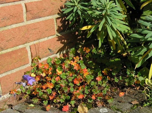 sarastros Ausführungen zu Geranium dalmaticum kann ich nur bestätigen, es wurde bei mir erst eine reichblühende Pflanze mit schöner Herbstfärbung als es aus dem Garten ausgebrochen ist und sich vor dem Tor in einer Fuge zwischen Pflaster und Torpfeiler angesiedelt hat.Hier ein Foto von Ende Oktober 2004