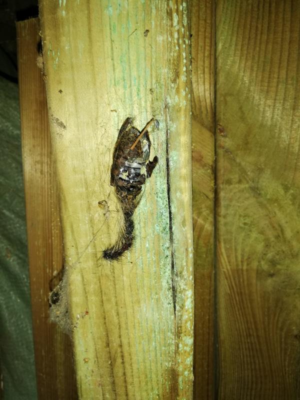 GG überraschte mich damit, beim Holzstapel hätte er Reste eines Skorpions gefunden. Das fand ich doch ungewöhnlich. ;D Aber wer hatte sich da verpuppt?