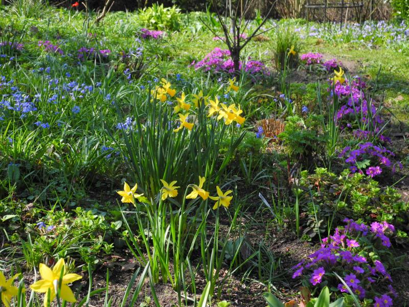 Keine besondere Primel wie die hier gezeigten, aber seit 100 Jahren geliebt: Pr. x pruhoniciana 'Wanda' hier im "Auenland"