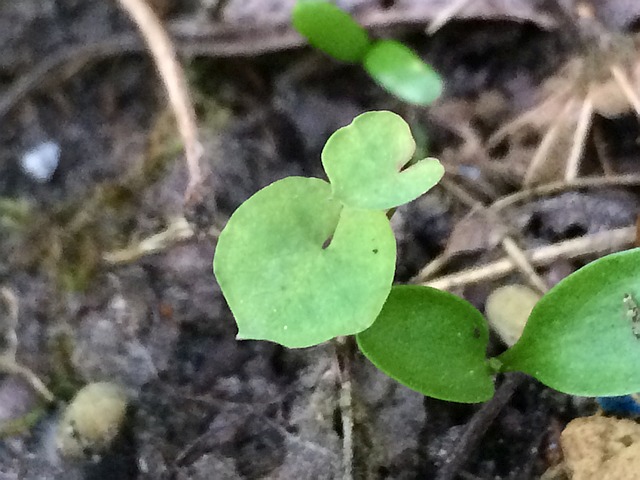 Ich habe diese Woche etliche Sämlinge von Jeffersonia diphylla nahe der Mutterpflanze gesehen.