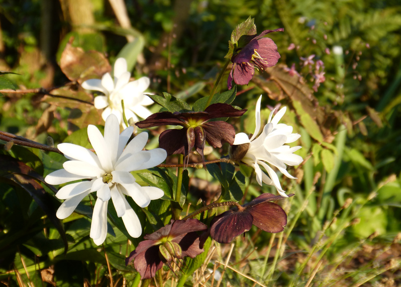 Noch ein kleines Beet mit mehr Hornveilchen, Hydrangaea "Sundae Fraise" die letzten Sommer ganz schön verbrutzelt wurde, und gerade loslegender Fetthenne