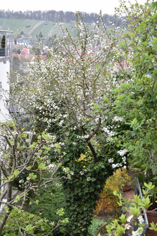 Ein 5 Meter hoher Kirschbaum hat auch was Positives, Ernten im 2. Stock.
